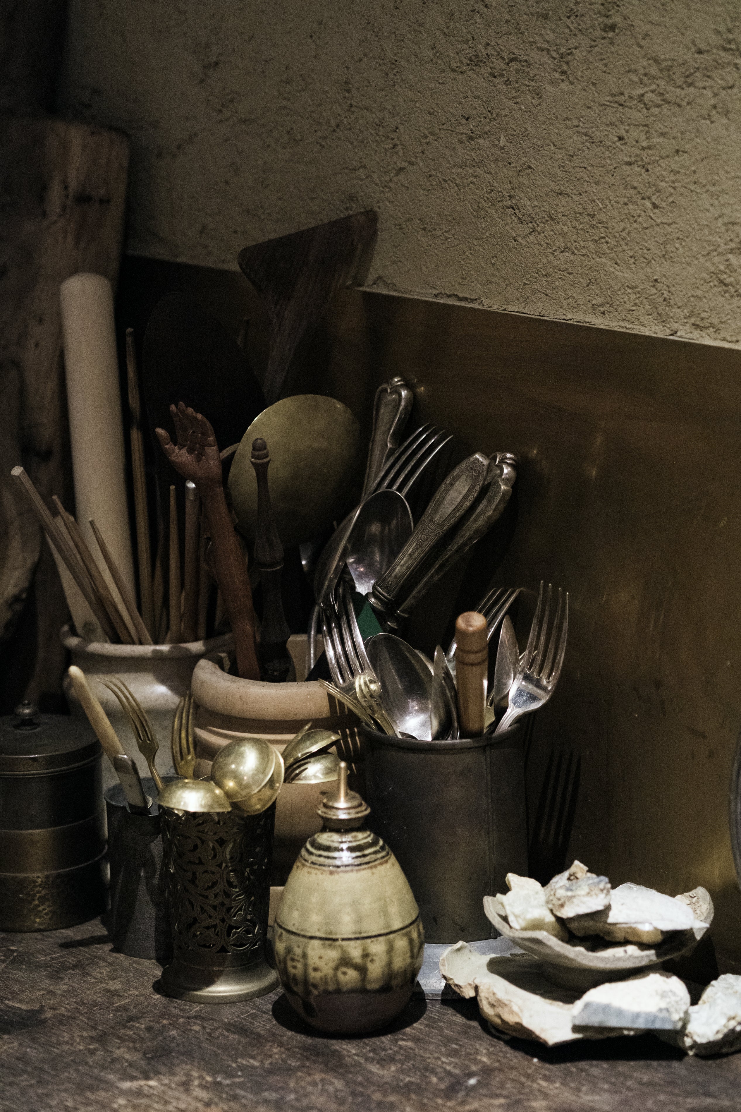 Beautiful cutlery is displayed in the gallery kitchen.