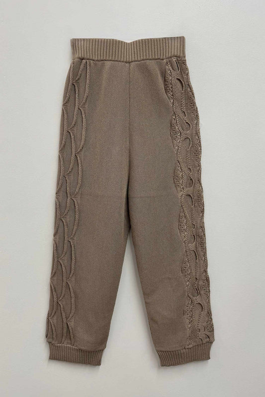 CABLE KNIT PANTS WITH RIB / TAUPE