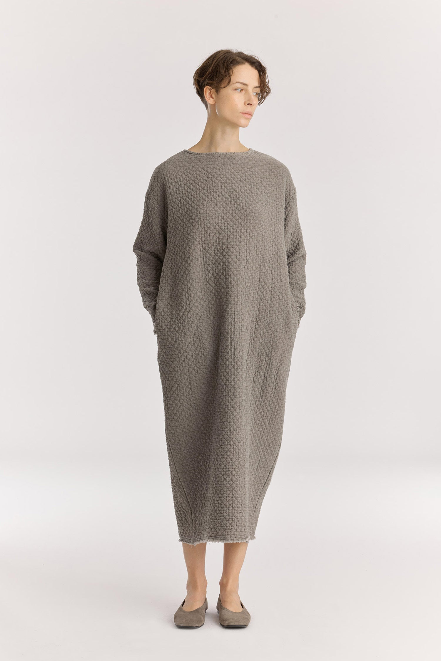 DIAMOND QUILTED DRESS / DK. LIME / DQ-LD18