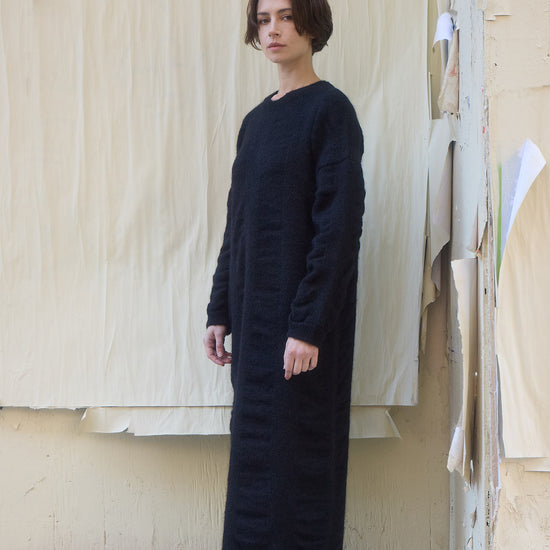 WATERFALL KNIT DRESS / BLACK / KN-KD02